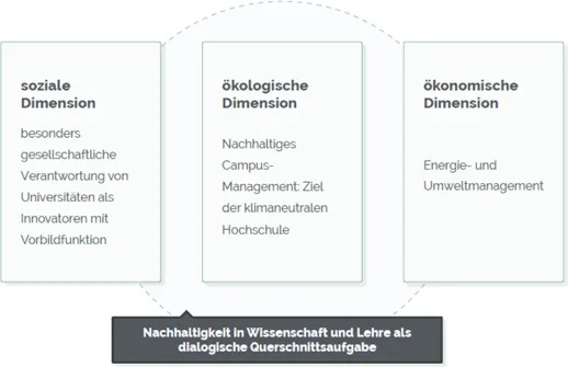 Abb. 1: Nachhaltigkeitsdimensionen an der FU (eigene Darstellung).