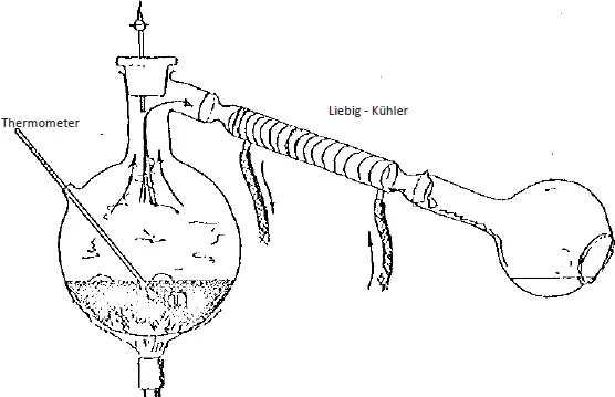 Die Bestandteile des Erdöls unterscheiden sich in ihren Siedepunkten. Aus diesem Grunde ist es möglich, eine „fraktionierte Destillation“ durchzuführen. Hierbei wird das Rohöl zunächst leicht erhitzt. Beim Errerichen des Siedepunktes eines Inhaltsstoffes verdampft fast ausschließlich dieser. Durch anschließende Abkühlung (Kondensation) kann der so extrahierte Bestandteil weitgehend rein dargestellt werden (bei flüssigen Inhaltsstoffen). Die Inhaltsstoffe können so in der Reihenfolge ihrer Siedepunkte als einzelne „Fraktionen“ gewonnen werden. Der prinzipielle Aufbau ist auf Seite 266 dargestellt.