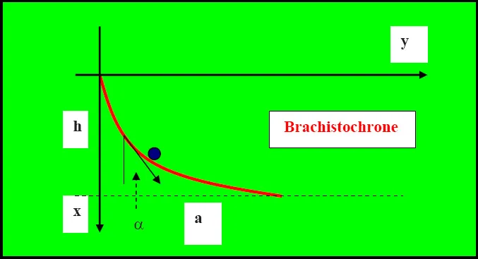 Ein Körper soll in einer senkrecht gedachten Ebene von der Stelle x=0, y=0 ausgehend zur Stelle x=h, y=a reibungsfrei gleiten. Gefragt ist nach dem Kurvenverlauf y(x), bei dem er am schnellsten zum Ziel kommt.