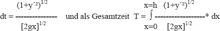 Mit diesem Integral kann man die Laufzeit berechnen, wenn der Kurvenverlauf y(x) bzw y´(x) bekannt ist. Das gilt also allgemein.