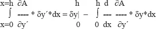 Da die Funktion y(x) gewissermaßen an den Enden festgezurrt ist, siehe Bild, ist an diesen Stellen δy(h) = δy(0) = 0, somit ist der erste Teil = 0.