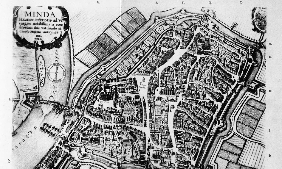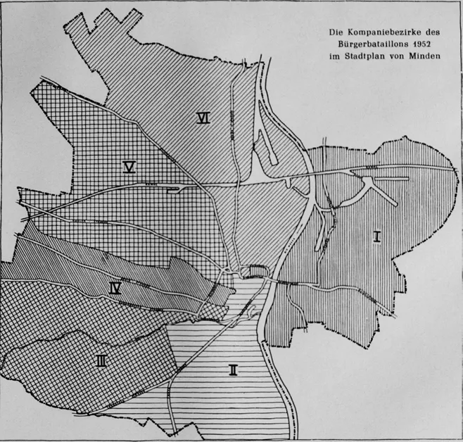 Der Dreißigjährige Krieg, mit der Besetzung durch die „Kaiserlichen“ unter Tilly anno 1625 und 1634 durch die Schweden, nahm den Mindenern ihre Selbständigkeit. Jedenfalls ist von militärischen Übungen der Bürgerschaft in dieser Zeit nicht die Rede. Aber für andere öffentliche Aufgaben wie Wach-, Bollwerks- und Feuerlöschdienste wird die Stadt erstmals in sechs Bezirke eingeteilt: Das Marientorsche, Wesertorsche, Hahlertorsche und Kuhtorsche Quartier, das Marktquartier und die Fischerstadt.