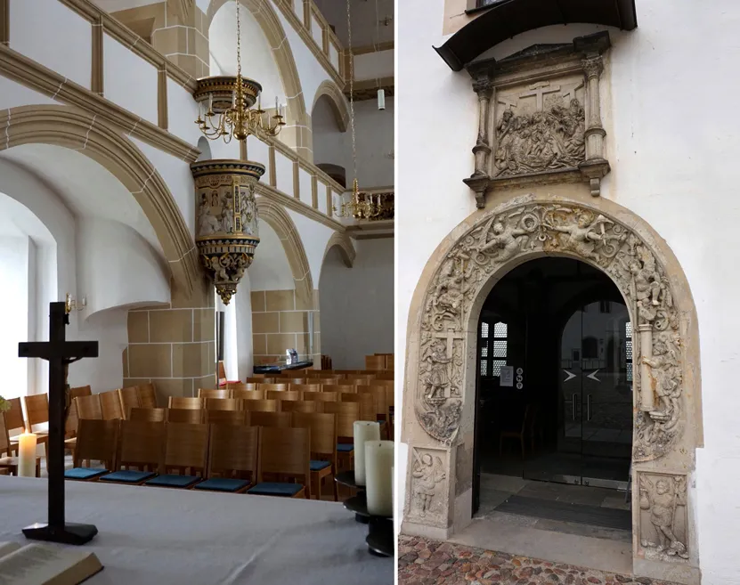 Der weltberühmte Maler Lucas Cranach übernahm die Farbgestaltung des Innenraums, die auf Wunsch Luthers ganz reduziert sein sollte. Nichts sollte vom Wort Gottes ablenken. Die Kirche sollte ein Begegnungsort sein, in dem man das Wort Gottes empfängt.