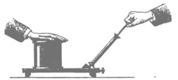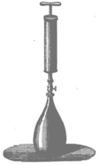 Da ich Euch nun dieses kleine Experiment gezeigt habe, wollen wir auch gleich einige Folgerungen daraus ziehen, ohne welche Ihr so manches andre, zu dem wir noch gelangen werden, nicht recht verstehen würdet. Erinnert Ihr Euch vielleicht eines ähnlichen Experimentes? Habt Ihr noch nichts dergleichen beobachtet? Nun will ich einmal eine ähnliche Pumpe nehmen, wie ich sie vorhin benutzte, um Luft in die kupferne Flasche hineinzupressen, und will den Apparat so einrichten, dass ich die Öffnung mit der Hand bedecken kann. Wir können die Hand in freier Luft so leicht hin und her bewegen und glauben kaum etwas dabei zu fühlen; es erfordert schon eine sehr rasche Bewegung, um einen Widerstand der Luft gewahr zu werden. Wenn ich aber meine Hand hier auf den Rezeptor der Luftpumpe decke und lasse nun die Luft auspumpen – seht da, was geschieht!