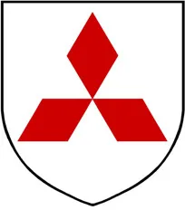 Abb. 3: Legt man das Mon von Mitsubishi in einen Wappenschild, erhält man ein passables und gut zu blasonierendes Wappen (In Silber ein roter gestürzter Dreipaß aus Rauten).