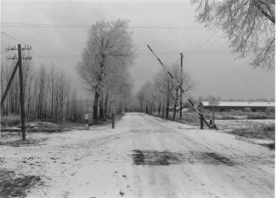 Osdorfer Straße an der Grenze zu Osdorf mit Schlagbaum, 1959. Foto: Privatbesitz Gisela Meyer