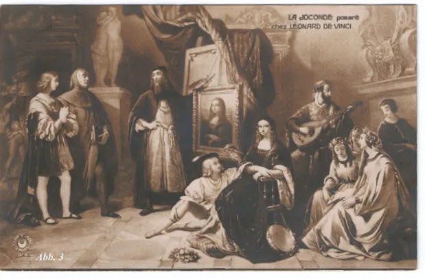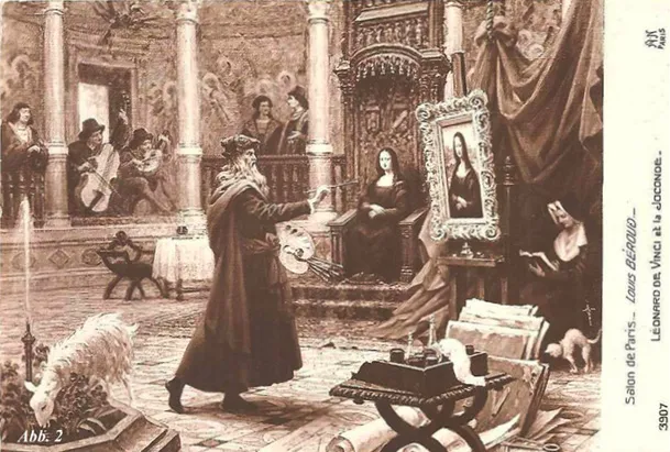 Nachdem er Ritterkönig Franz I (1494-1547), dem „le Roi-Chevalier“ von Frankreich seine Aufwartung gemacht hat und über den Aufenthalt von daVinci in Amboise erfährt, stattet er Leonardo in seinem Atelier des königlichen Landschlösschens zu Clos Luce‘ am 10.10.1517 einen längeren Besuch ab. Auf die Frage des Kunstliebhabers, als ihm Leonardo ein Frauenbildnis zeigt, wer denn diese graziöse Schönheit auf dem Gemälde sei, antwortet LdV, dass es sich „um eine gewisse florentinische Dame handle, die er auf Wunsch von Giuliano de‘ Medici nach der Natur malte“.