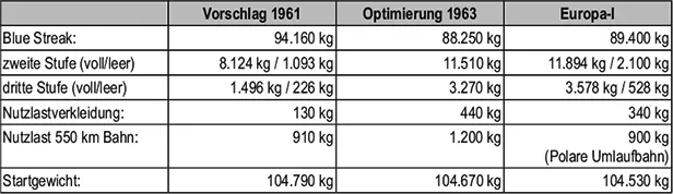 | Vorschlag 1961 | Optimierung 1963 | Europa-I | |