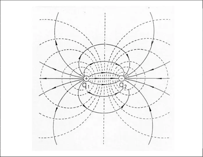 Abb. 1.1.4: Elektrisch geladene Teilchen und ihre Felder