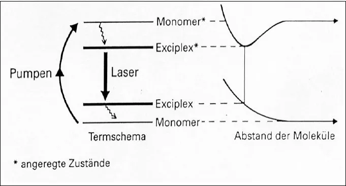 Abb. 1.1.6: Das „Vier-Niveau-Laser-Modell“ der DNA nach Popp und Li (aus „Biophotonen – das Licht in unseren Zellen“ M. Bischof, Verlag 2001)