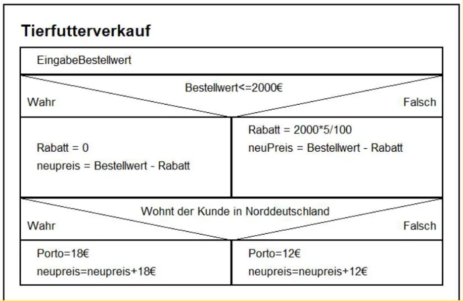 - Ja: Berechne Rabatt (5 %) [Betrag * 5 / 100]