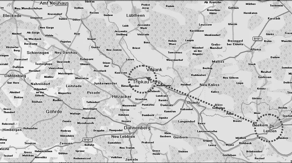 Der kleine idyllische Ort TRIBBEKAU, heute TRIPKAU, liegt 30 km stromabwärts von Lenzen gegenüber der Stadt HITZACKER am östlichen Rand des Elbe-Urstromtals. Er hat heute rd. 250 Einwohner, aber immer noch einen Bäcker und ein Wirtshaus und gehört wie eh und je zum Amt NEUHAUS, das weitere gut 20 km stromabwärts liegt.