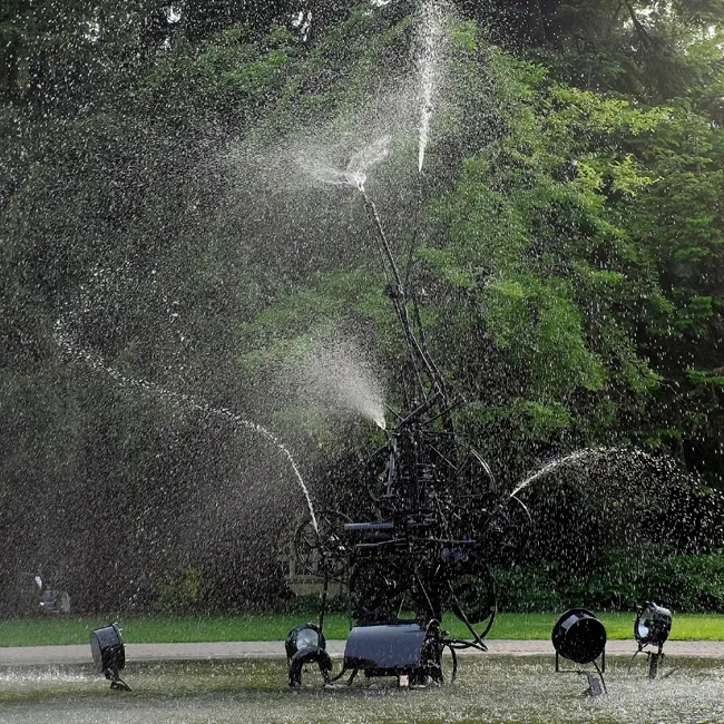 Kinetic Fountain in front of the Museum Tinguely Basel. The fountain was created by Jean Tinguely.