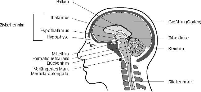 Abbildung 2.1: Übersicht über den Aufbau des Gehirns (vgl. Becker-Carus 2004, S. 61)