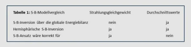 Überprüfen wir mit diesen Aussagen einmal die beiden diskutierten S-B-Inversionen zur Berechnung einer globalen Durchschnittstemperatur (Tabelle 1):