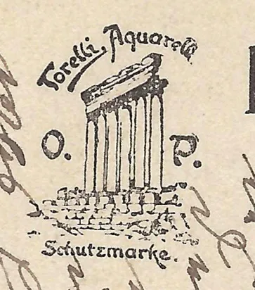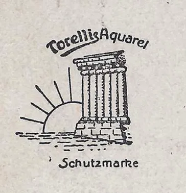 Die konkrete Geschichte der Torelli-Karten ging freilich noch weiter. Diverse motivisch ähnliche und sogar identische Belegexemplare zeigen auf der Rückseite eine weitere, differierende Form des Herstellernachweises. Der neue Schriftzug Torelli Aquarell, der aber offenbar nur übergangsweise genutzt wurde, lehnt sich grafisch sowohl an die Ursprungsform als auch an das unmittelbare Vorgänger-Logo an, ist jedoch wiederum eigenständig und erkennbar abweichend komponiert, nun ohne grafisches Element als Zusatz. Auch diese Karten sind relativ exakt auf die Jahre um 1921 datierbar. Und zweifelsfrei war nicht mehr Otto Peters hier am Werk, sondern es hatten ganz offenbar weiter reichende Veränderungen stattgefunden.