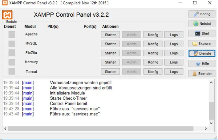 Man könnte auch Apache und MySQL als Service installieren, womit nach jedem Neustart des PCs die Tools automatisch zur Verfügung stehen.