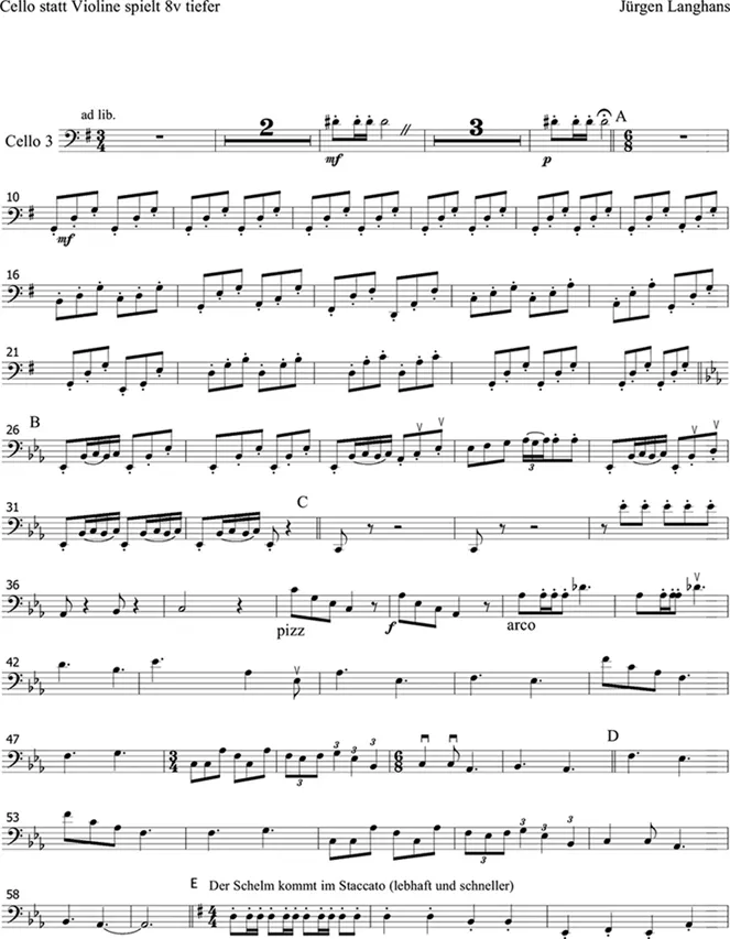 Das Notenbüchlein umfasst 13 liedhafte, einprägsame Spielstücke, vom Autor in vierstimmigen Sätzen arrangiert, vorzugsweise für Cello-Ensemble in Quartett-Besetzung oder füllenderen Formationen. Im Teil A befinden sich die Partituren, im Teil B die Einzelstimmen.Das unkonventionelle Notenmaterial ist eine Bereicherung des ohnehin nicht allzu üppigen Bestands für diese Zielgruppe: Angesprochen sind kleine und große Straßen- oder Bühnenmusiker, Musikschulen, Einstudierende, die abseits der klassischen Vorlagen noch ein bisschen mehr Spaß haben wollen. Die Tatsache, dass die Kompositionen weitgehend unbekannt sind und nicht zum "Klassik"-Repertoire der sonst üblichen Pop- und Country-Arrangements gehören, dürfte ein zusätzlicher Anreiz sein, diese Quartette in der Öffentlichkeit auszuprobieren.Jedes Stück wird kurz erklärt, und es gibt Empfehlungen für eine vielseitige, lustige Interpretation. Als "Gäste" sind Kamm, Akkordeon, Cembalo, Violine oder Pauke ebenso gerne gesehen wie mutige Sänger... Spielvoraussetzungen Celli: Schwierigkeitsgrad 2 – 3