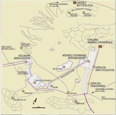Lageplan: Die Höhle liegt gleich beim Bergbahnhof der Zahnradbahn