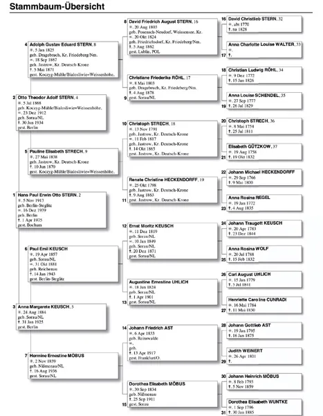 1.1 Stammbaum-Übersicht des Familienzweiges Stern