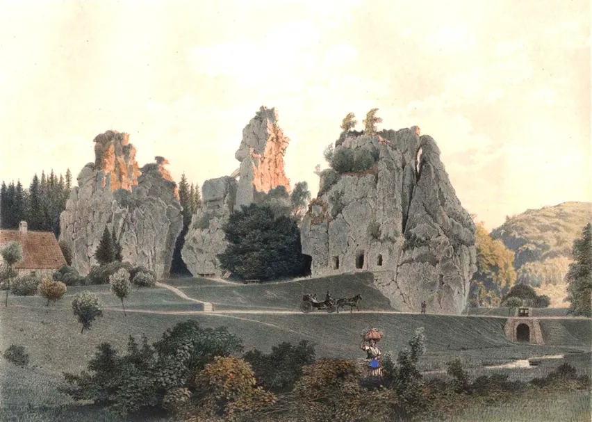 Abb. 2: Die Externsteine im 19. Jh., Kupferstich.