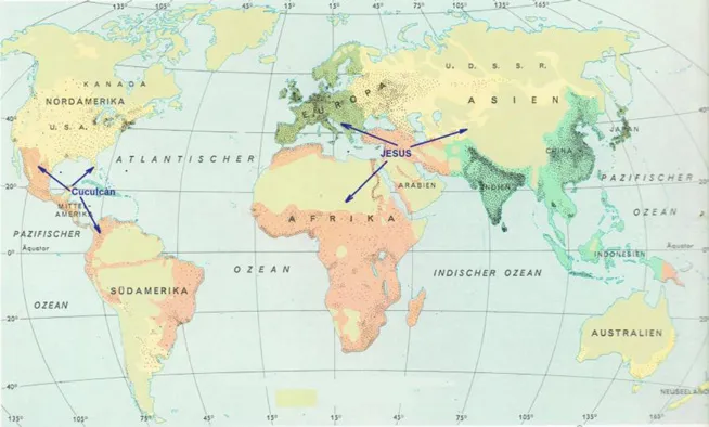 Jesus hat seine Friedenslehre im Zentrum der verbundenen Kontinenten Euro-Asia-Afrika durchgeführt.