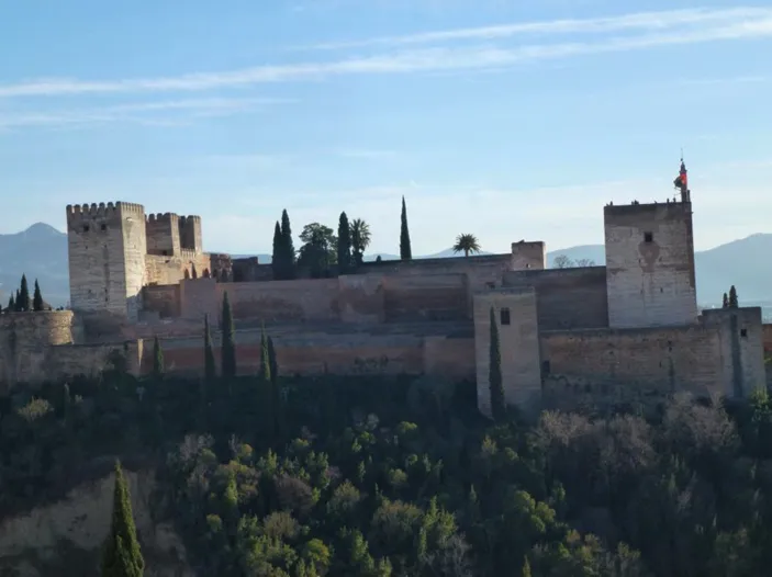 Bereits vom Stadtgebiet aus erhascht man immer wieder Blicke auf den Festungsbereich („al-Kasbah“ bedeutet Festung), der wie ein Sporn oder wie ein riesiges Schiff in Richtung der Stadt ragt – bedrohlich und dominant, aber auch mächtig und erhaben. Der Torre de la Vela als mächtigster Turm der Alhambra lässt ein wenig von der Dominanz erahnen, die die maurischen Königreiche lange Zeit ausgeübt hatten. Es ist ein uralter Festungsbereich, auf dem vor den Mauren bereits die Römer eine Wehranlage errichtet hatten. Die ersten Zitadellen maurischer Herrscher, wie die Alcazaba Vieja, waren auf dem Albaicín erreichtet worden, doch galt dieser Bereich als unübersichtlich und schwer zu kontrollieren. Al-Ahmar war es, der als Herrscher ab dem Jahr 1238 auf einen Festungsneubau auf dem Sabika-Hügel setzte. In erhöhter Position über dem Darrotal und dennoch in fast unmittelbarer Nähe zur Stadt konnte man diese und ihre Bewohner hervorragend kontrollieren und genoss von den Wachtürmen aus einen exzellenten Weitblick über die gesamte Vega als potenzielles Aufmarschgebiet etwaiger Feinde.