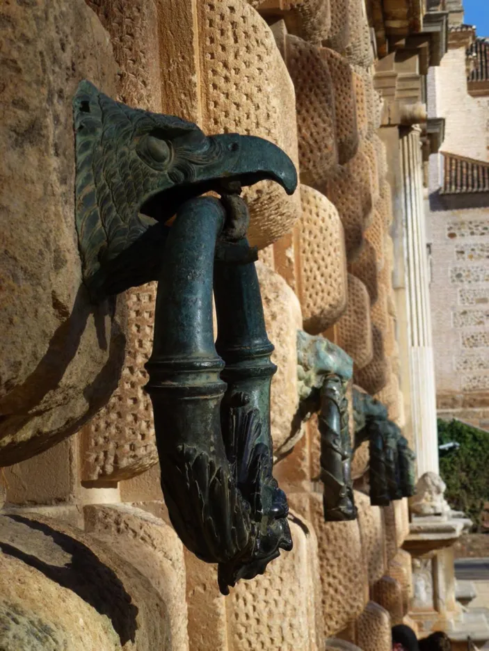 Die Formen des Karlspalastes sind in einem für die Renaissance typischen, jedoch für Spanien völlig untypischen klassisch griechischrömischen Stil gehalten. Die Fassade, aber auch die schiere Dimension des riesigen Bauwerks strahlen Macht und Perfektion aus und die Größe dominiert das Zentrum des Areals der Alhambra. Die edlen, filigranen nasridischen Räume werden von diesem architektonischen Koloss beinahe erdrückt. Symbole von Macht sind an der Fassade ebenfalls die Pferde- und Löwenköpfe, die Bronzeringe zum Ankoppeln von Pferden tragen. Ihre Vorbilder sind im Florenz des 15. Jahrhunderts zu suchen.