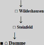 Im südlich von Lohne gelegenen Steinfeld verließ ich den Zug, um gut zehn Kilometer nach Damme zu wandern. Das Wetter war angenehm, kaum Wind, die Temperatur fast zu warm. Der Weg durch Steinfeld selbst ein bisschen lang und ein wenig öde. Leider konnte ich keine Hinweise auf den eigentlichen Pilgerweg finden. Wohl gab es Wanderwege quer durch die Landschaft mit erheblichen Umwegen. Da ich nichts riskieren wollte, nahm ich den Radwanderweg direkt neben der Straße. Auch früher haben sich schließlich Pilgernde an der Infrastruktur orientiert und sind wohl kaum im Zickzack durch die Landschaft gelaufen – es sei denn, um irgendwo Gnadenbilder aufzusuchen.
