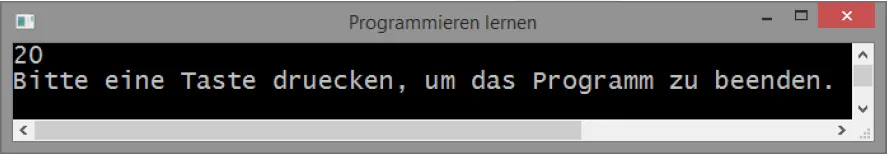 BEMERKUNG: *************************BEMERKUNG: Programmbeispiel: EineBEMERKUNG: Funktion schreibenBEMERKUNG: *************************FUNKTION ZAHL Zurückgeben(ZAHL x)RECHNEN x = x + 10RUECKGABE xENDESTARTZAHL yRECHNEN y = Zurückgeben(10)AUSGABE ySTOPP