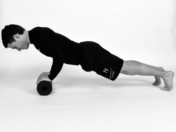 LIEGESTÜTZ MIT ROLLE UNTER DEN SCHIENBEINEN