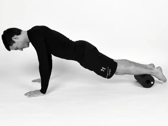 - Je weiter die Rolle in Richtung Sprunggelenke liegt, desto intensiver die Belastung. Größte Intensität wird erzielt, wenn die Zehen auf der Rolle stehen.