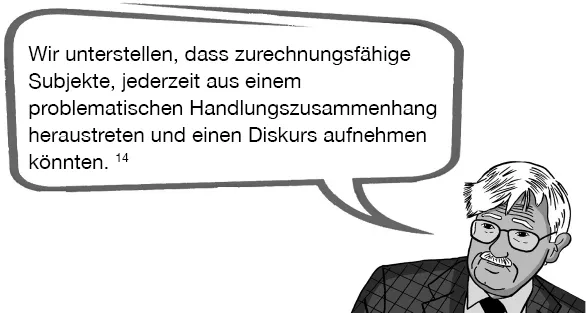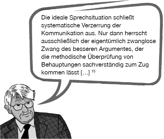 Diese ‚ideale Sprechsituation‘, in der nur noch das ‚bessere Argument‘ zählt, ist aber keinesfalls eine Idealisierung oder irgendein utopisches Ziel, sondern nach Habermas eine Unterstellung, die wir hunderte Mal am Tag machen, und zwar immer dann, wenn wir zu sprechen beginnen. Wir verlassen uns nämlich auch in der Alltagskommunikation immer schon darauf, dass wir etwaige Konfliktfälle auf der Beziehungsebene notfalls thematisieren, ausblenden und damit auf die Diskursebene wechseln können. Letztlich, so Habermas, können wir gar nicht anders, als beim Sprechen automatisch zu unterstellen, dass das Gespräch zu einer echten Übereinkunft führen kann und unser diesbezüglicher Anspruch auch eingelöst wird: