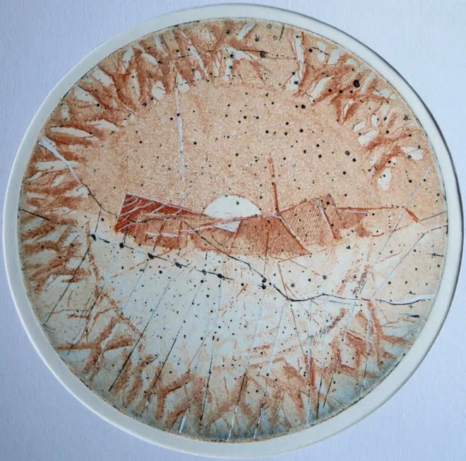 "von der Zeit" - Lyrik beflügelt zu Zeichnungen und Farbradierungen. Bilder sind Anlass für Wortverdichtungen, lyrische Texte. Ein Grafiker und eine Lyrikerin fanden Gemeinsames zum Thema Zeit. Der Ammonit als Leitfossil steht in Verbindung zur Landschaft der Schwäbischen Alb. Im Ammoniten steckt die Figur der Spirale, eine Metapher für das Leben des Einzelnen, aber auch für die Einbindung in die Umgebung. Die Spirale findet sich wohl in allen frühen Kulturen und ist sozusagen der erste Buchstabe in ihrem Alphabet. Im Spiralnebel ist der kosmische Bezug enthalten.Erinnerung beschäftigt sich mit dem Vergangenen, dem unwiederbringlich Verlorenen. Erinnern ist ungenau, fragmentarisch. Zwischen Vergangenheit und Zukunft aber ereignet sich der glückliche Augenblick, das Erhaschen der Locke des Kairos und prägt sich ein ins Gedächtnis. Mit dem Vergehen der Zeit verbindet sich die Sinnfrage, die Frage nach dem, was bleibt.