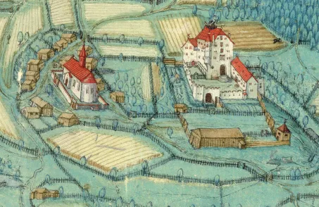 Abb.: Steffan Ebersberger, Kirche und Schloss Großhöhenrain um 1600