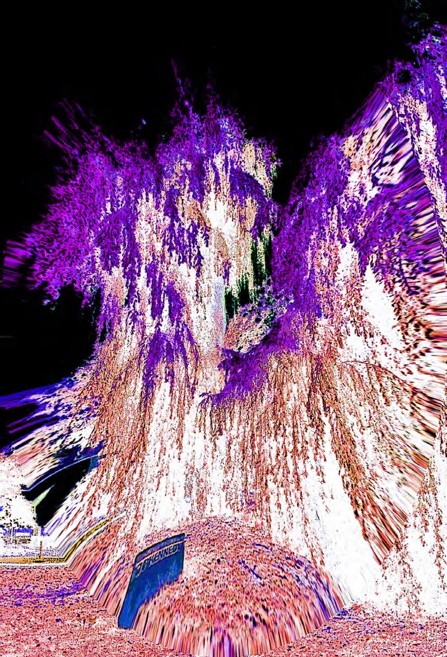 Schauen wir sie uns an, die gigantische Trauerweide auf dem Kennedyplatz Kaiserslautern. Ja, sie hat sich verändert: Hell-, dunkelblau und golden leuchtet sie jetzt und hier in dieser Nacht der Nächte - auf dem Papier.