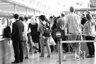Auf Ihrer Boarding-Card stehen nicht nur Ihre Flug- und Ihre Sitzplatznummern, sondern auch, zu welchem Terminaltor (Gate) Sie gehen müssen und die Boarding-(Einsteige-)zeit. Dieser Vorgang benötigt allerdings ein bisschen Zeit, der Sicherheit zu Liebe. Die erste Sperre prüft, ob Sie überhaupt eine Boarding-Card besitzen. Sie berechtigt Sie zum Eintritt in die Sicherheitszone für Flugpassagiere. Abholer müssen außerhalb dieser Zone warten. Vielflieger nennen diese Station: "Mit dem Ticket winken".