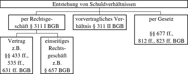 Ein Schuldverhältnis kann auf drei Wegen zustande kommen:34