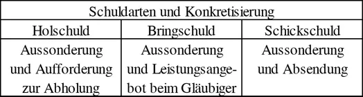 Vom Leistungsort zu unterscheiden ist der Erfolgsort, d.h. der Ort an dem der Erfolg der Leistung eintritt. Nach den möglichen Kombinationen von Leistungs- und Erfolgsort lassen sich drei Schuldarten unterscheiden: