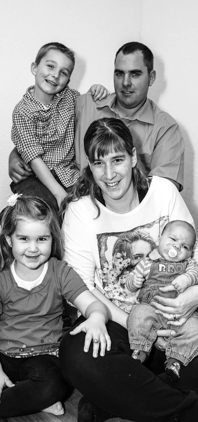 Sandra (30) & Ralph (31) mit Lars (7), Marina (5) & Adrian (1)