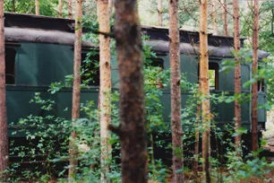 In einem Wald auf Usedom eingewachsener Salonwagen des Kaiserzuges