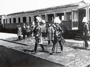 Die Repräsentanten der Eisenbahn hatten bei solchen Veranstaltungen, nach der Weisung der Eisenbahn zur Behandlung Allerhöchster und Höchster Herrschaften, in Galauniform mit Zweispitz, Glace-Handschuhen, Degen und Portepee zu erscheinen. Zu diesen Empfängen gehörte auch der festliche rote Teppich auf dem Bahnsteig, der den Ehrengästen ausgerollt war. Der Zug mit dem Salonwagen hatte mit der vorgesehenen Wag...