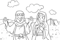Abraham und Sara lebten nun seit einiger Zeit in dem Land, das Gott ihnen versprochen hatte. Aber das Kind, das Gott ihnen auch versprochen hatte, ist immer noch nicht geboren. Sara sagte zu Abraham: „Ich glaub nicht mehr daran, dass ich noch ein Kind bekommen werde. Und du Abraham?“