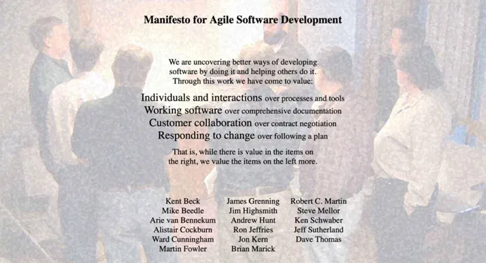 Der Begriff agile, so wie er heute im Unternehmenskontext verwendet wird, geht auf das „Agile Manifest“ zurück. Im Jahr 2001 trafen sich erfahrene Software-Entwickler und Projektleiter, um zu diskutieren, was sich ändern müsste, damit Projekte erfolgreicher abgewickelt werden könnten. Erfolg wurde definiert als besseres Erfüllen der Kundenbedürfnisse, im Zeitplan und mit vertretbaren und vorhersehbaren Kosten.