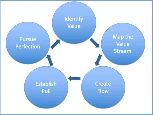 Neben dem „Agilen Manifest“ sind die – wesentlich älteren – Lean Principles (siehe //2//) ein Grundelement, das dem heutigen agilen Arbeiten zu Grunde liegt. Diese wurden in den 60’er Jahren bei Toyota entwickelt, um die Produktion möglichst effizient zu gestalten. Daher gibt es hier einen Fokus auf die Vermeidung von „Waste“ (Abfall, Verschwendung, Behinderung, Wartezeiten).