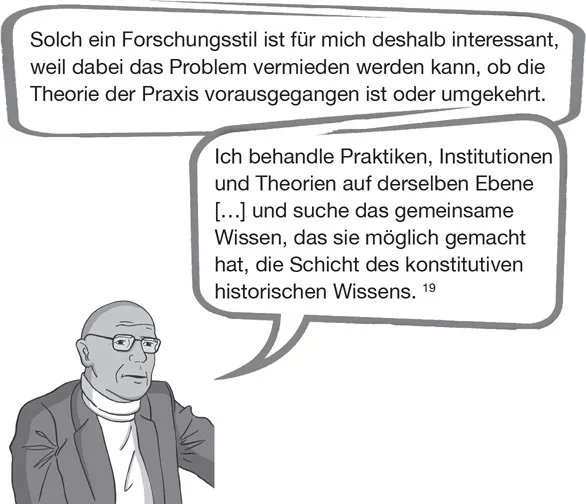 Die bisherige Philosophie, so Foucault, hätte entweder idealistisch nur die Theorie ernst genommen und das Wissen einer bestimmten Epoche einzig und allein an den bedeutendsten Ideen, also den Gedanken der Könige, Philosophen und Genies festgemacht oder umgekehrt nur materialistisch die ökonomischen und sozialen Verhältnisse berücksichtigt, die dann vermeintlich alles andere bestimmen.