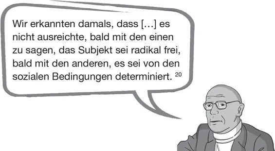 Beides sei aber falsch. Letztlich, so Foucault, müsse man sich einzig und allein an die tieferen Strukturen des Wissens einer Epoche und ihrer institutionalisierten Wahrheitsproduktion halten. So gesehen war Foucault durch und durch Strukturalist. Mit Gleichgesinnten kritisierte er deshalb schon während seiner Studentenzeit Sartres existenzialistische These, wonach der Mensch absolut frei entscheiden könne und auf der anderen Seite die These von Marx, wonach die Entscheidungen und Überzeugungen der einzelnen Subjekte nur die Folge ihrer wirtschaftlichen und sozialen Lage seien: