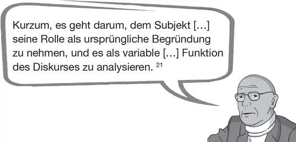 Das Subjekt, also der Mensch, ist in Foucaults strukturalistischer Betrachtung nicht länger der Ursprung und der Begründer neuer Gedanken und Entwicklungen, sondern nur noch eine „variable Funktion des Diskurses“. Das bedeutet, wir äußern als einzelne Subjekte zwar unsere Meinungen, aber wir können sie eben nur in der Weise äußern, wie es der Funktion im herrschenden Diskurs entspricht. Wir können immer nur das sagen, was sich innerhalb der Grenzen des vorherrschenden Diskurses sagen lässt: