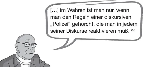 Auch unsere vielgerühmte freie Meinungsäußerung ist letztlich, so Foucault, eine Illusion. Sie wird nämlich fundamental von der jeweiligen Diskurswirklichkeit geprägt und ist somit keineswegs so frei, wie wir es gerne hätten. Jeder individuelle Diskursbeitrag erfolgt nur innerhalb bestimmter gesellschaftlich konstituierter Strukturen, wie der Grammatik unserer Sprache, den Sitten und Gepflogenheiten unseres Landes, dem politischen System, der gelernten Moral, der gängigen Überzeugungen, der pädagogischen Erziehungsstile, der vorherrschenden Ästhetik und somit all der Axiome, die wir gerade für wahr halten – kurzum innerhalb der Struktur des „konstituierenden Wissens“ unserer Zeit. Dieses konstituierende Wissen verändert sich zwar von Epoche zu Epoche, es bestimmt aber durchgängig den Charakter der Diskurse. Dabei ist das jeweils produzierte Wissen nicht die Wahrheit, sondern nur das, was in den Diskursen der jeweiligen Epoche gerade als wahr gilt: