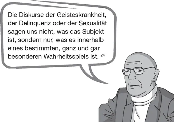 Bereits in seiner über fünfhundert Seiten umfassenden Doktorarbeit mit dem Titel Wahnsinn und Gesellschaft gelingt Foucault ein erster großer Wurf. Er beschreibt darin die Struktur unserer abendländischen Vernunft anhand ihres Umgangs mit dem Wahnsinn. Dabei enthüllt er nicht nur die aktuellen Kriterien, mit denen unsere moderne Wissenschaft die Wahnsinnigen beziehungsweise psychisch Kranken von den Normalen trennt, sondern auch den Umgang mit dem Wahnsinn in früheren Epochen. In der Renaissance beispielsweise sei die Gesellschaft gegenüber dem Wahnsinn noch sehr „gastfreundlich“ gewesen. Die Irren, wie man damals sagte, wurden nicht einfach weggesperrt, ...